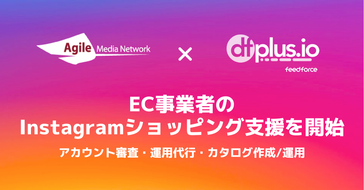 「dfplus.io」を提供するフィードフォース、Instagramショッピングにおいて、アジャイルメディア・ネットワークと共同してEC事業者支援を開始~アンバサダーのクチコミを活用したカタログ作成・広告配信・コンテンツ配信も展開~